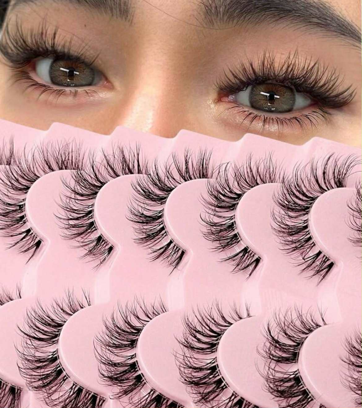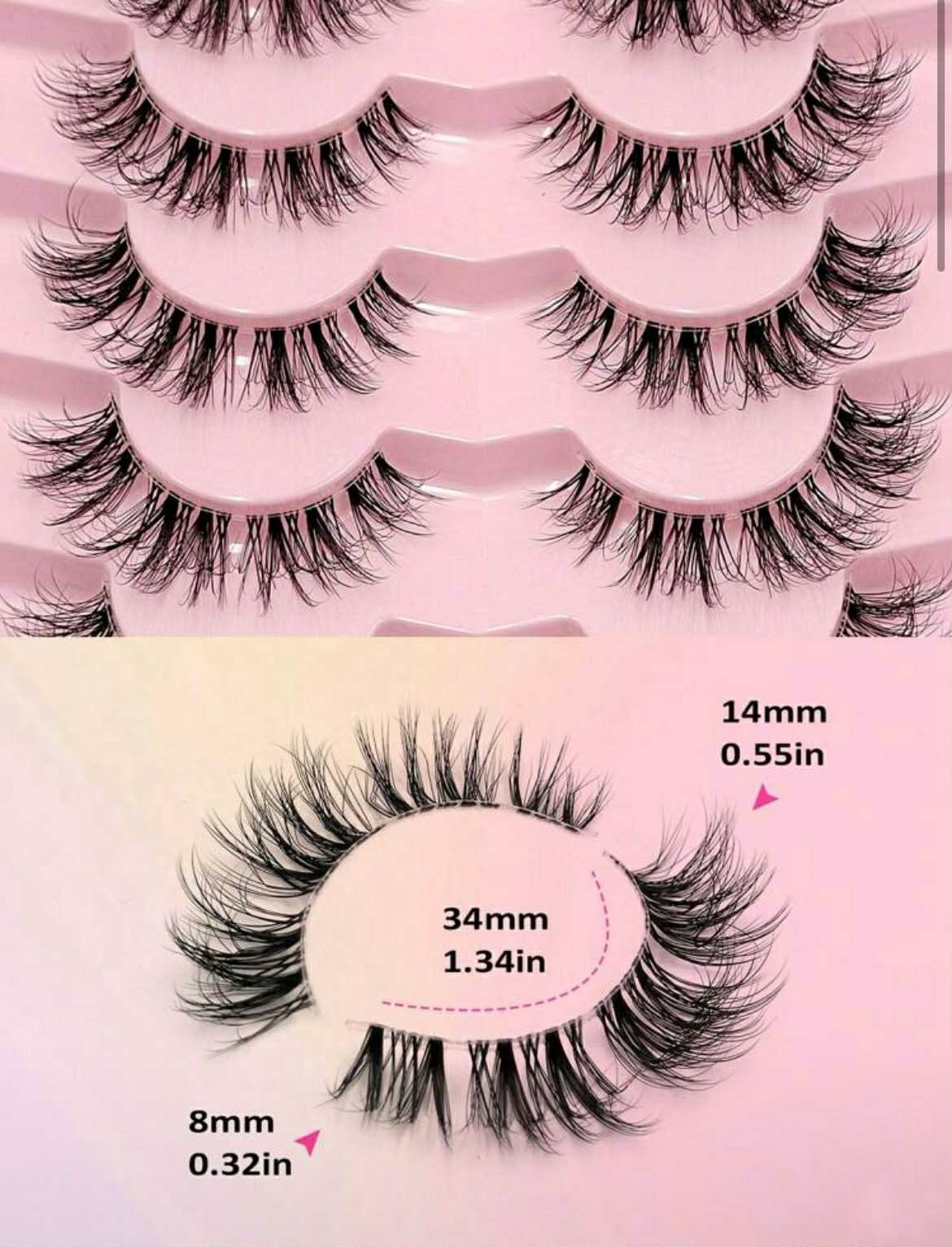 Dirbtinės blakstienos Cat Eye (katės akies) stiliaus, blakstienų linijos spalva - permatoma. Dėžuteje yra 5 poros blakstienų.
