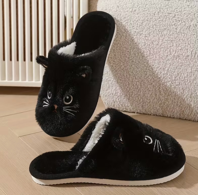 Juodos spalvos Šiltos žieminės moteriškos šlepetės su katinėlio snukučiu. Dydis- 36