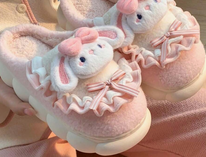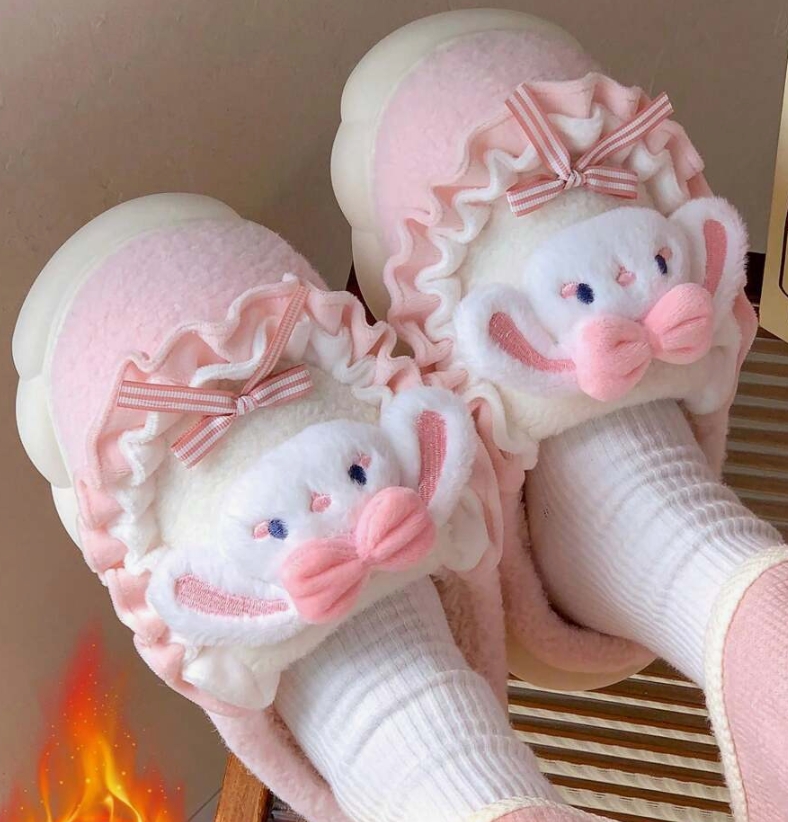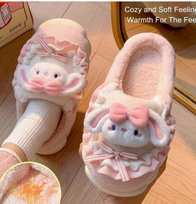 Linksmos ir žaismingos švelnios rožinės spalvos su mielais kiškučiais mergaitiškos šlepetės pradžiugins mažąsiąs princeses.