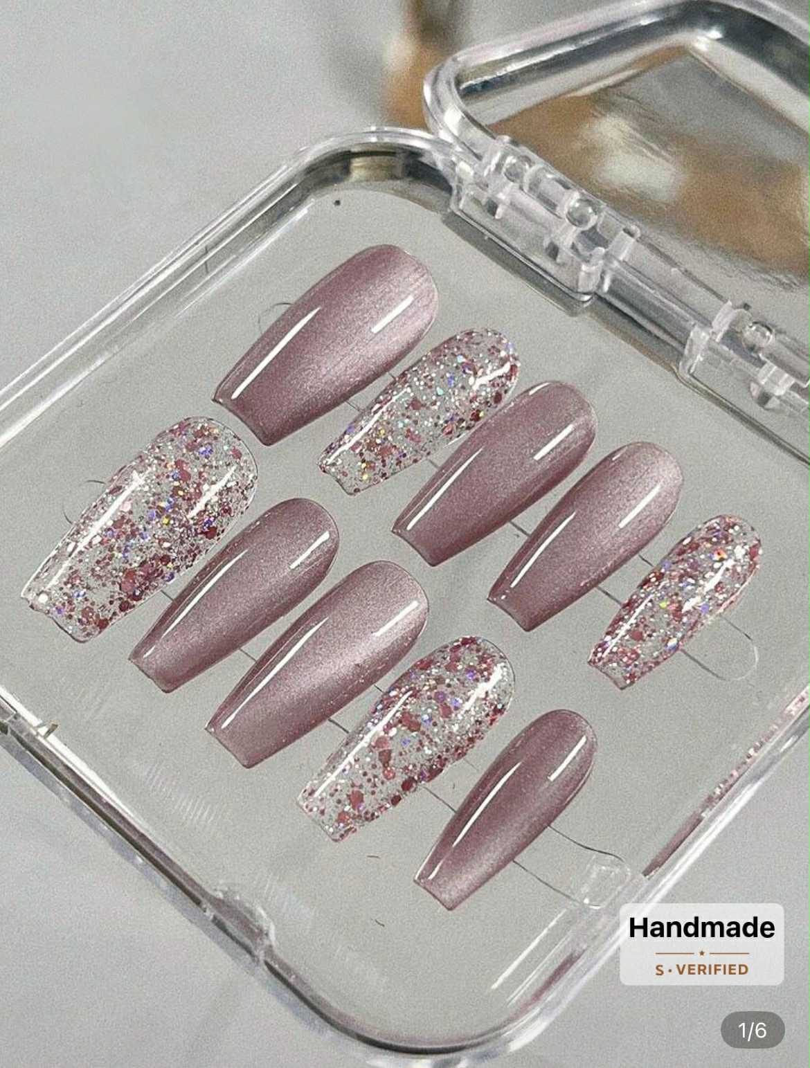 Press on NAGAI kaip salone rožiniai su blizgučiais
