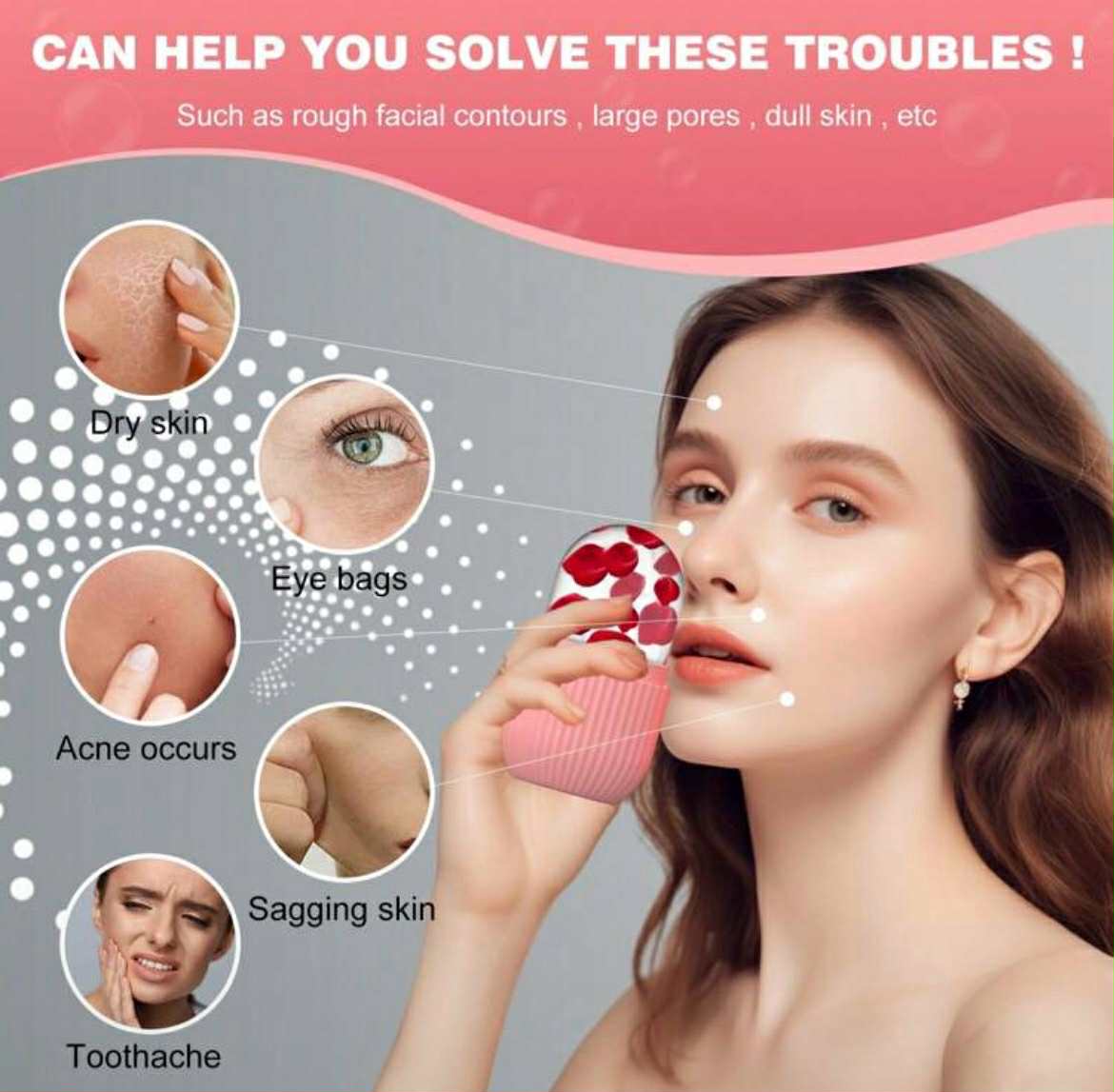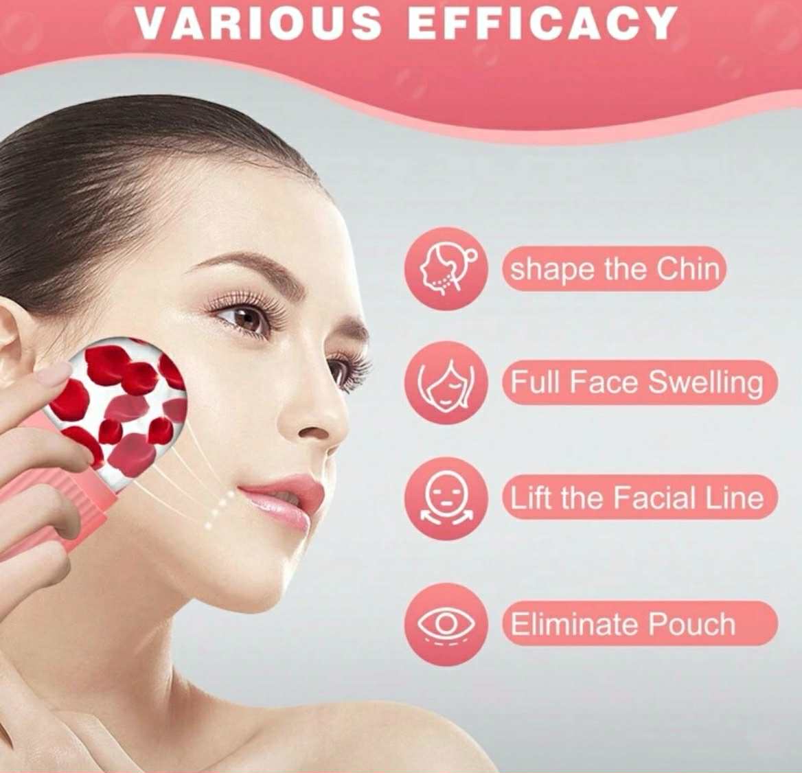 Šaldantis veido masažuoklis padeda nuo veido patinimo, atgaivina ir pažadina odą. Galima naudoti vandenį ar pieną.