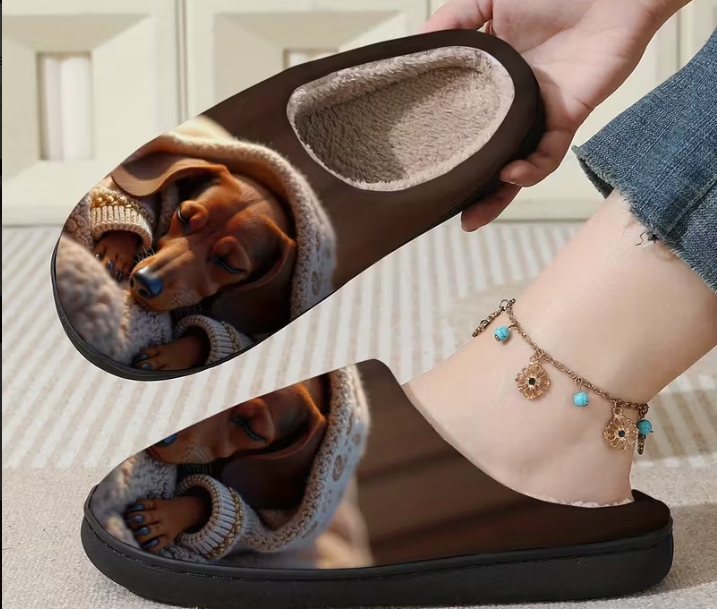 Jaukios, šiltos ir mielos šlepetės taksiukų mylėtojams ir augintojams.
